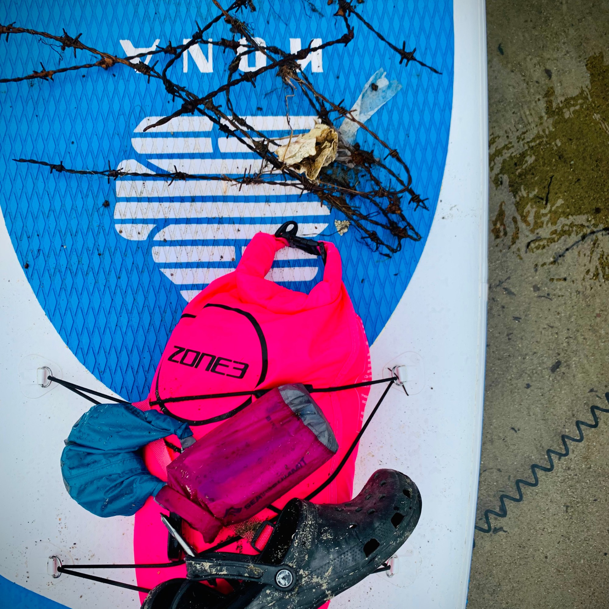 Två bildäck, en minkfälla, sju golfbollar, plank med utstickande spik, tre ölburkar, diverse metallföremål, och så plast i dess alla former och ännu mer plast.