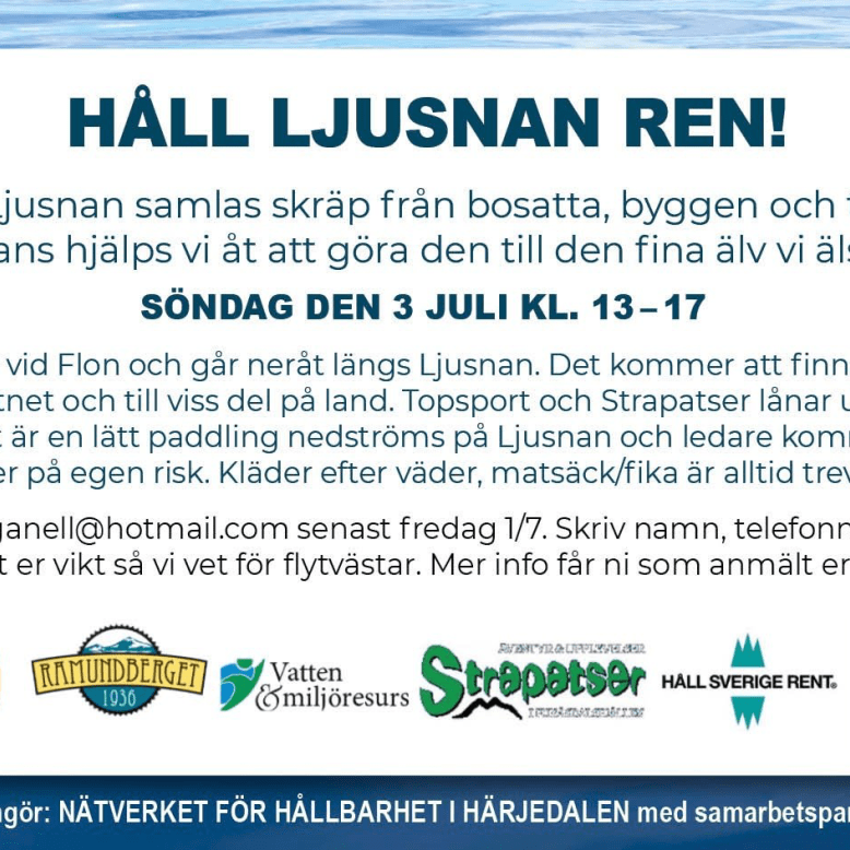 Den 13 juni blir en dag då vi städar en del av Ljusnan från Flon och neröver tillsammans!