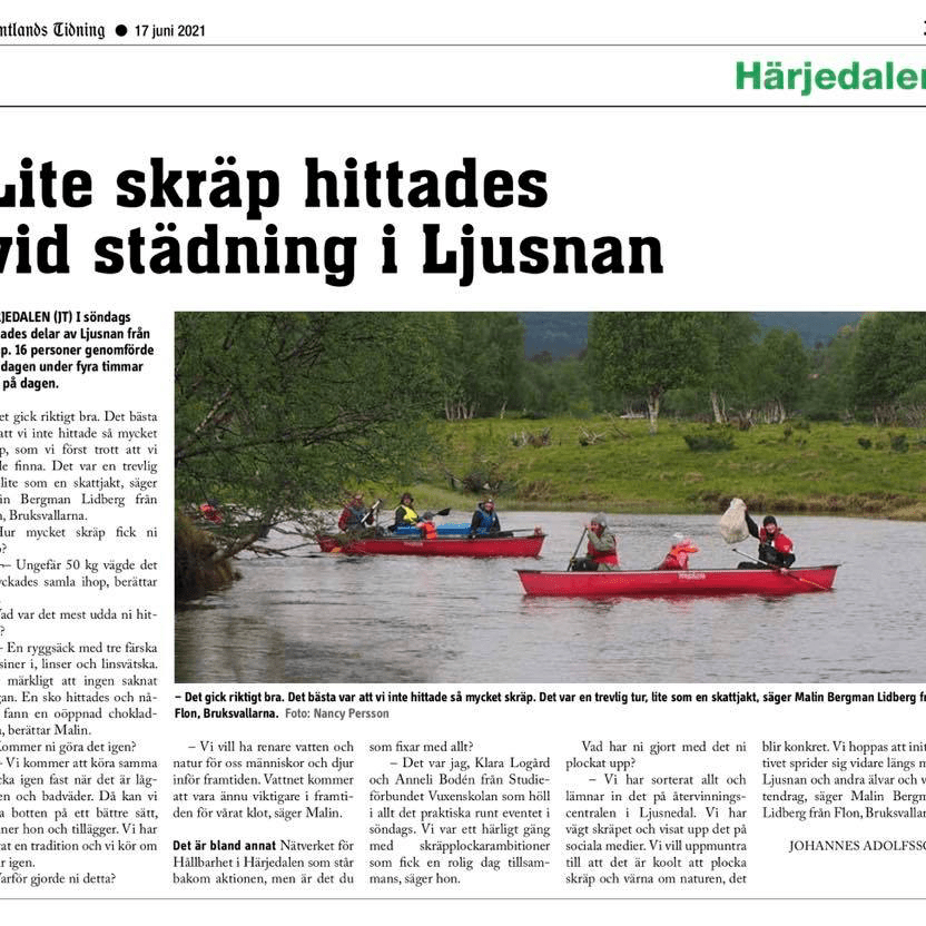 Lyssna gärna på intervjun som P4 Jämtland Sveriges Radio gjorde med Nätverkets egen ploddlingsfantast och forsrännare Malin Lidberg i samband med att vi städade Ljusnan; https://sverigesradio.se/artikel/de-stadade-ljusnan-genom-ploddling-paddlade-och-plockade-skrap