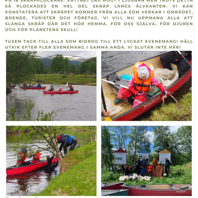 Tack vare Ramundberget och Strapatser AB har vi möjlighet att städa upp våra fina älv med hjälp av kanoter! Vatten & Miljöresurs hjälper oss med plastpåsar och sortering av skräpet som samlas ihop.